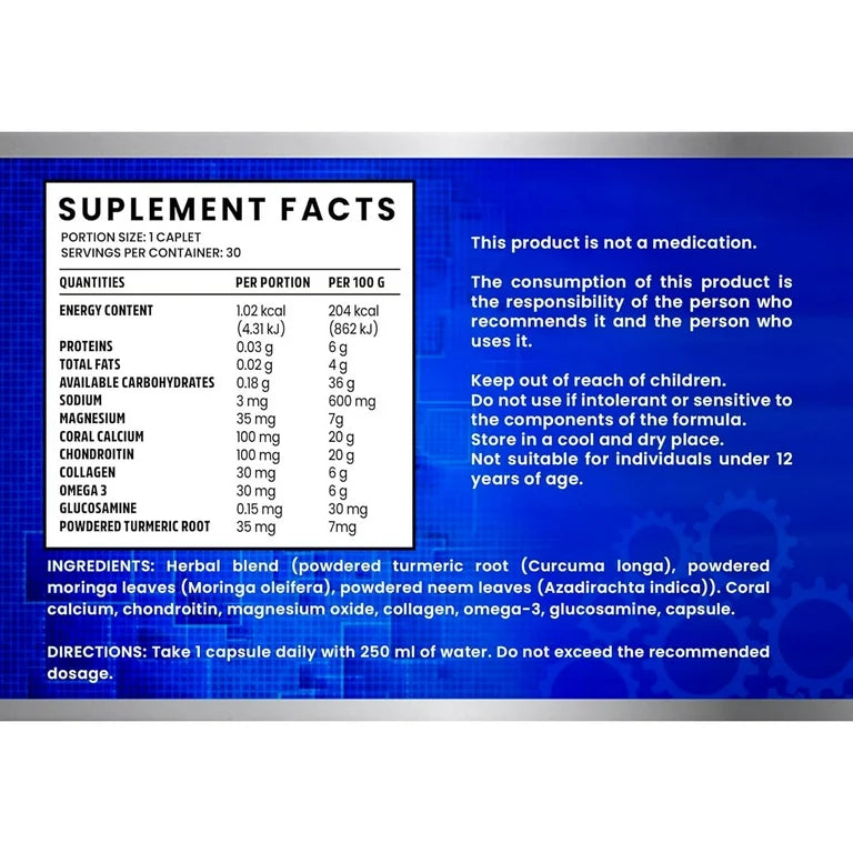 The Ultra Advance 3 combines active ingredients like Turmeric, Ginger, Coral Calcium, Omega-3, and Garlic to support immune function and muscle health. With a total of 30 capsules in each pack, taken at a dosage of 500 mg per capsule, this unisex supplement offers a blend of beneficial nutrients for overall well-being. The ultra advance brand ensures quality and effectiveness in promoting health and wellness with this convenient capsule formulation.